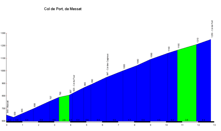 Le col de Port (1 249 m), depuis Massat, est l’un des cols les plus accessibles et réguliers de l’Ariège. Avec une pente douce et stable, il permet un travail d’endurance idéal, sans les ruptures de rythme typiques des Pyrénées plus abruptes.