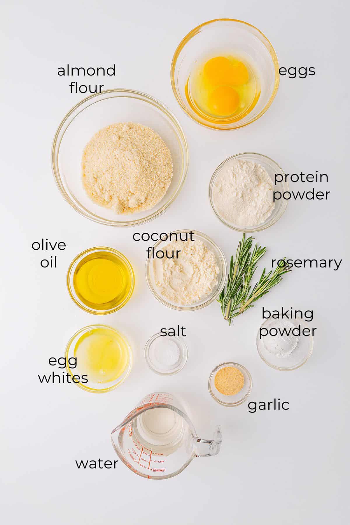 - Dans un bol, mélanger les farines (amande, coco), psyllium, levure et sel.