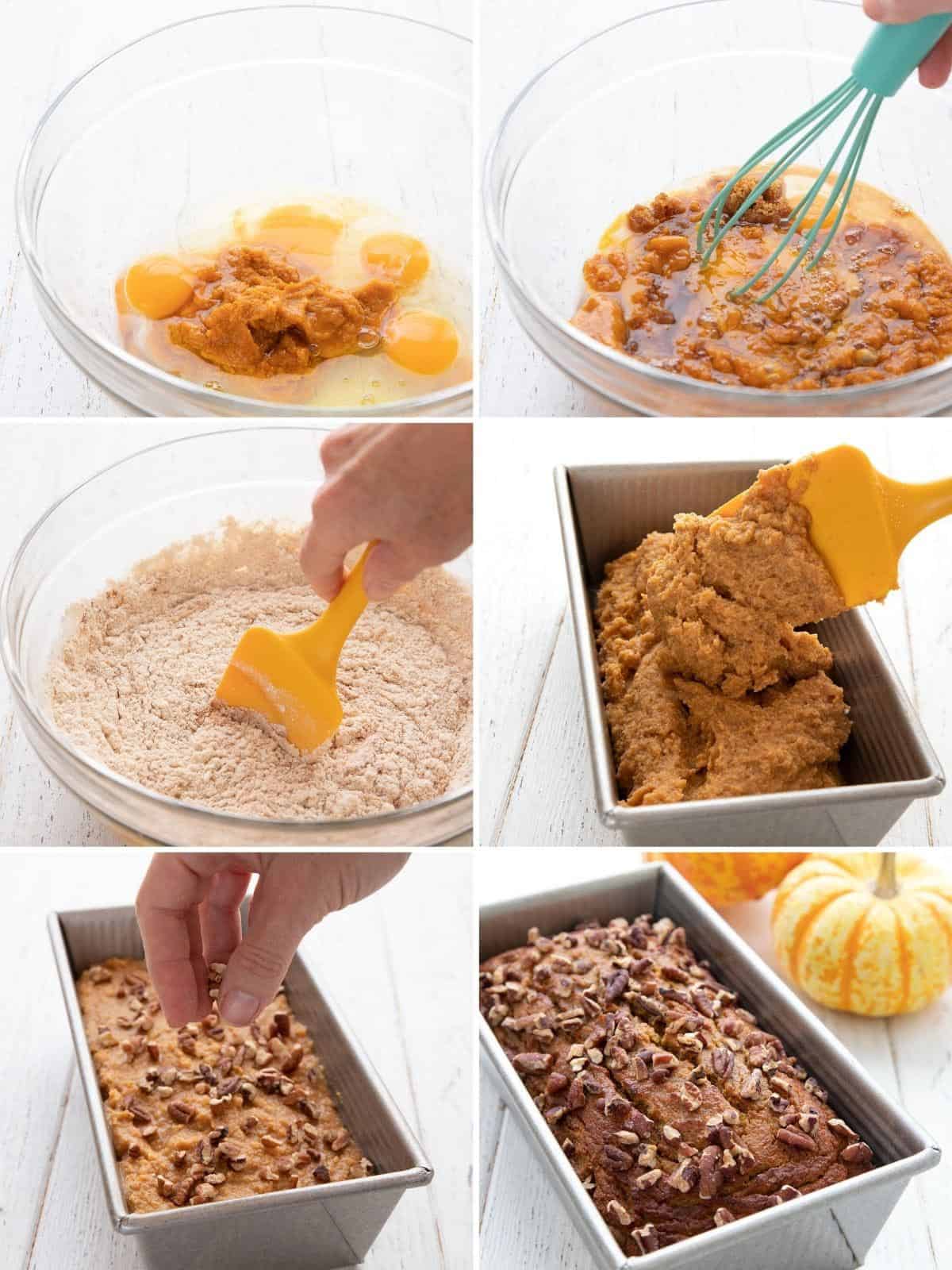 - Verser dans le moule préparé, parsemer de noix de pécan hachées si utilisé.